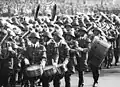 The traditional German Großer Zapfenstreich ("Grand Tattoo") military ceremony was held on Republic Day in the evening. It was made official in 1981 after it was introduced in 1962 and was updated from the Prussian version, to adjust for the addition of "elements of the progressive military inheritance" which included Soviet compositions and a medley of German and international working-class songs and marches. It also included a torchlight procession, an opening fanfare, and the presentation of the NVA Colors.
