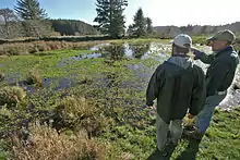 The emergence of the restoration economy as a concept followed closely from historic shifts in natural resource policy in the mid 1990s, when the northern spotted owl and several species of salmon with habitat in the Pacific Northwest were listed as endangered. The listings created a significant shift in forest management policies across the region, leading to drastic decreases in logging and other natural resource extraction activities that would further destroy habitats for these species.[2][3] The listings also marked a shift toward more sustainable land management through forest and watershed restoration, as policy makers began to realize that environmental restoration work could provide social and economic, in addition to ecological, benefits.[4] Federal and state agencies sought to replace some of the economic activity that was lost as extraction activities declined with economic activity from restoration work. The Northwest Forest Plan (1994) initiated several programs intended to transition traditional logging communities and workforce's toward livelihoods in restoration work.[5][6] The Collaborative Forest Landscape Restoration Act (2009), the National Forest Economic Action Plan, and stewardship contracting opportunities also focus on marrying ecological with socioeconomic benefits from national forest management. In Oregon, decreased timber yields and the potential for additional salmon listings that would further affect traditional land management activities led to the creation of community-based watershed councils under the Oregon Watershed Health Program (1993), and later the Oregon Plan for Salmon and Watersheds (1997). With dedicated state lottery funding, these watershed councils continue to promote voluntary restoration actions that improve salmon habitat by encouraging collaboration at the local level and promoting both socioeconomic and ecological benefits through restoration.[7][8]