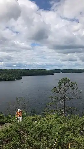 Restoule Provincial Park is a provincial park in Parry Sound District in Central Ontario, Canada.[1] It is located between Restoule Lake and Stormy Lake and extends along the banks of the Restoule River to its mouth at the French River (excluding the banks belonging to the Dokis First Nation) in geographic Patterson Township[2] and geographic Hardy Township.[3] The park is located at the western terminus of Highway 534 northwest of Restoule, Ontario. The park offers three hiking trails and is home to coyotes, wolves, bears, otters, pine martens, moose and one of Ontario's largest white-tailed deer herds. It is also home to over 90 species of birds including the peregrine falcon and the heron. Camping areas include Bells Point, Putts Point and Kettle Point. Many hike the well-marked trail to the 100-foot (30 m) fire tower overlooking Stormy Lake. It is one of two provincial parks found in the Almaguin Highlands.