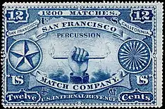 Among the more notable instances of tax stamp usage occurred in the photography trade. As the Civil War progressed, the demand for photographs of family members, soldiers going off to war and returning war heroes increased dramatically, but not without the notice from the Federal government who saw the advent as an opportunity to raise much needed revenue for the war. On August 1, 1864 the Internal Revenue department passed a 'photograph tax' requiring photographers to pay a tax on the sale of their photographs. By 1864 there were no 'photography tax' stamps issued, so other stamps were substituted, typically, the proprietary or playing card revenue stamps was used, usually affixed to the back of the photograph. Already burdened with high overhead costs and scarcity of materials because of the war, large photograph companies organized and petitioned Congress, complaining that they were shouldering too much of the tax burden placed on the public. After exactly two years their constant efforts resulted in the tax being repealed on August 1, 1866.[9] Several other widely used products, such as cotton, tobacco and alcohol, were also charged a proprietary tax which appreciably contributed to the revenues generated.[10]
