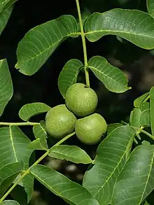 The husk fly also infests ripe apricot and peach fruits, usually if infested walnuts are located within flying distance.[7]
