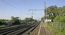 To the south of the halt there are non-electrified factory lines, which branch off towards the Rhine bridge from the former Krupp's works, now Logport, and from the various companies in the Logport area and Krupp's own former port and from the container terminal that has since been built there.
