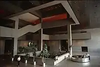 The tower's interior has frequently been used for art exhibits. These include the Young People's Art Exhibit, sponsored by the Ohio Art Education Association in 2001.[30] An Ohio Art League exhibition in 1992 prompted complaints from the building's tenants. Some of the pieces impeded hallways;[31] other works in the exhibit received complaints due to nudity or their statements on sexism and reproductive rights.[32] It was reported in 1973 that tower would feature its own commissioned artwork, at a cost of $300,000 to $400,000, including graphics, sculptures, and tapestries with themes of Ohio history, culture, geography, and resources.[33] In 1974, a proposal aimed for $1,175,000 for paintings, gardens, sculptures, and other artworks, including a rooftop garden and sculpture;[34] $800,000 was estimated to have been spent on the program in June 1974.[35]