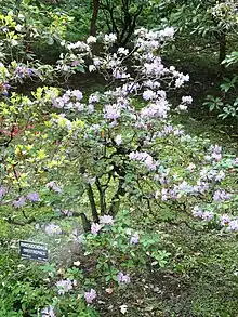 Rhododendron oreotrephes (山育杜鹃, shan yu du juan) is rhododendron species native to Burma and south-west China, collected in Sichuan in 1904 by Dr. Ernest Henry Wilson. It is an upright shrub, growing to 4 metres (13 ft) in height, with oblong, often bluish, leaves up to 6 centimetres (2.4 in) in length. Its flowers are pink to lavender. Fragrant leaves smell of warming spices with notes of cinnamon and pine.