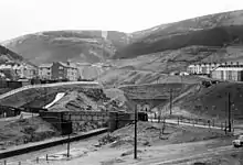 The former Port Talbot Railway had numerous branches in the lower part of the area of the R&SBR main line, and from near Pontrhydyfen to Port Talbot the two lines ran close together in the valley, although the PTR followed a much more tortuous alignment. In 1954 a connection was installed near Pontrhydyfen and the lower part of the PTR was closed.[5]