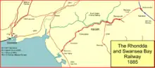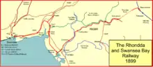 The Rhondda and Swansea Bay Railway was a Welsh railway company formed to connect the upper end of the Rhondda Fawr with Swansea, with the chief objective of transporting coal and other minerals to Swansea docks. It was incorporated in 1882, but at first the connection to Swansea from Briton Ferry was refused.