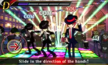 During the story, players encounter a series of rhythm games which are controlled by using the Nintendo 3DS's touch screen, face buttons or gyroscopic controls. Types of levels featured include swiping the stylus to match up with other dancers, tapping the touchscreen to hide behind statues, pressing buttons to fight off groups of enemies and tilting the console to dodge attacks. The game also features tributes to past Sega rhythm games such as Space Channel 5 and Samba de Amigo. Additional medals can be earned depending on the rank players receive. The game also features wireless multiplayer for up to two players to compete for the highest score and Streetpass functionality where players can challenge others to beat a high score.