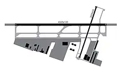 Rialto Municipal Airport covered 600 acres (240 ha) and had two asphalt runways: 6/24 is 4,500 by 100 feet (1,372 m × 30 m) and 17/35 is 2,650 by 50 feet (808 m × 15 m).