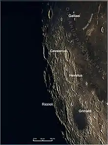 | Riccioli | Latitude | Longitude | Diameter |