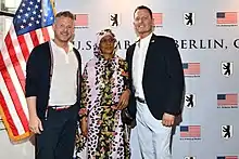 Matt Lashey, Chadian Ambassador Mariam Ali Moussa and Grenell in the Berlin Embassy in 2019