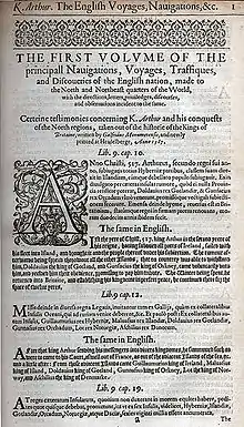 - ↑ Hakluyt, Richard (1599). Goldsmid, Edmund (ed.). The Principal Navigations, Voyages, Traffiques and Discoveries of the English Nation (1885 Fourth ed.). London and Aylesbury: Hazell, Watson & Viney Limited.