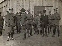 Secretary of War Newton D. Baker, General Pershing and other officers, including Major General Richard M. Blatchford, inspecting Rest Camp No. 1 at Saint-Nazaire, France, March 1918.