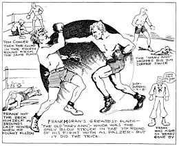 Cartoon panel from The Broadside, which illustrated the article, "Fighting Sailors of the Past and Present: Frank Moran," by Jim O'Boyle.[14] Dick's brother, Ike Dorgan, was Frank Moran's boxing manager.