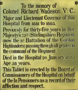 Plaque to Colonel Wadeson in the Royal Hospital, Chelsea