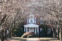 Richwood Hall, also known as Richwoods, is a house near Charles Town, West Virginia. The lands once belonged to George Washington, who received them from Thomas Fairfax, 6th Lord Fairfax of Cameron and subsequently gave to his brother, Samuel Washington. It was Samuel's son, Lawrence Augustine Washington, who built or moved into the house with his bride, Mary Dorcas Wood, in 1797. This original house now forms a wing of the present enlarged house. The Washingtons lived at Richwoods until 1802, when they sold the property to Smith Slaughter. By 1829 the house had been enlarged, either by Slaughter or his successor, Joseph Shewater. In any case, materials, including bricks and carved wood were imported from England.