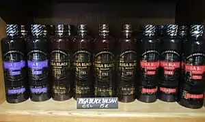 Riga Black Balsam (Latvian: Rīgas Melnais balzams) is a traditional Latvian balsam often considered to be the national drink of Latvia.[2] According to tradition, only the Head Liquor Master and two of his apprentices know the exact recipe.[3] Nowadays, Riga Black Balsam is produced by JSC Latvijas Balzams and has received more than 100 awards at different international fairs throughout its history.[4]