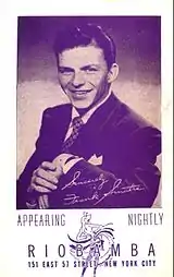 Among the acts that performed at the Riobamba were singer Jane Froman,[9] vaudeville performer Grace Hayes,[10] singer-actress Hannah Williams,[8] and the Chandra-Kaly Dancers.[11] Dean Martin appeared as a last-minute substitute for Frank Sinatra in September 1943.[12][13]