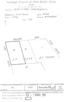 1. 1 2 3 4 5 6 7 8 9 10 11 12 13 14 15 16 17 18 19 "Rising Sun Inn (former)". New South Wales State Heritage Register. Department of Planning & Environment. H00529. Retrieved 2 June 2018. Text is licensed by State of New South Wales (Department of Planning and Environment) under CC-BY 4.0 licence.