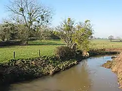 The River Leadon (/ˈlɛdɒn/) is a river in Herefordshire and Gloucestershire, England, a tributary of the River Severn. It rises just south of the village of Acton Beauchamp, and flows south past Bosbury to the town of Ledbury, which takes its name from the river.[1] It then flows south and east past Dymock, Upleadon and Highleadon to join the Severn at Over, just west of Gloucester. The river is approximately 32 miles (51 km) long.[2][3]