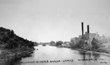 The Village of Riverdale was incorporated in 1893.[3] In 1904 the Englishman and former Chicago glucose manufacturer Charles Pope (1843-1922) [4] purchased property in Riverdale at what is today the west side of Indiana Avenue [5] with the intention of establishing a beet sugar factory. The property was previously occupied by The Riverdale Distillery, which had been established by the Union Copper Distilling Company of Chicago in 1871 to manufacture fermentum yeast. Located on the south bank of the Little Calumet river with access to the Illinois Central tracks, the beet sugar factory opened in 1905 with a capacity of 350 tons of beet sugar per day, a production rate that was eventually increased to 500 tons per day.[6] The factory was sold by Pope's heirs in 1922 to the Midwest Sugar Refining Company, who added sugar to the product line that was produced from cane supplied from Cuba and Puerto Rico.[7] and who the following year began a program that was intended "to expand this enterprise far beyond its present capacity so as to make the company one of the leading producers and refiners of sugar in the Middle West."[8] In 1947 this enterprise was replaced by The Chromium Mining and Smelting Corporation.[9]