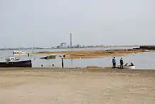 A cement works was then established on Motney Hill island in 1912.[3] During high tides, barges sailed into the river near the docks, then workers known as 'Muddies' collected mud from the riverbed and loaded it onto the barges. As the tide came back in, the barges would re-float and sail to Rainham Dock, where the mud would be mixed with chalk and fired at high temperatures to produce cement.[1]