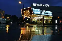 The Riverview Theater is a cinema in the Howe neighborhood of Minneapolis, Minnesota, United States. Designed by Liebenberg and Kaplan, the theater was built by theater owners Bill and Sidney Volk in 1948. After building a subsequent theater in a new ultramodern style, the Volks returned to the Riverview in 1956 and had its lobby area heavily renovated and updated. The Riverview remains one of several surviving single-screen cinemas in the Minneapolis–Saint Paul area and typically showed second-run films until the COVID-19 pandemic, when it switched to showing first-run movies. Since the early 2000s, it has been consistently recognized by City Pages as one of the best movie theaters in the area.