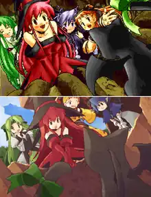 Cierra (シエラ, Shiera) is a kind, thoughtful witch. She is the older sister figure of the group[3] and possesses amazing magical powers. She is always optimistic but sometimes clumsy. She rescued Rose after she and Ein were separated, although she accidentally fed her a potion that removed Rose's ability to talk. For enjoyment, she studies and plays with magic. Cierra wears a typical witch's conical hat, red boots, and a revealing, serrated red dress. Her primary weapons in battle are staves and other magical weapons.