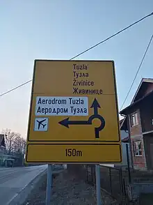 Road sign for roundabout in Dubrave Gornje, Živinice.