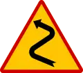 The Κ series of ΚΟΚ, includes warning signs. These signs have mostly a triangular shape (except for Κ-33 to Κ-37 and Κ-42α). Their borders are red (except for Κ-42α which is black) and their background is yellow (except for Κ-21 and Κ-42α which their white) with the pictograms being black. These signs are intended to alert drivers early on of risks (e.g. dangerous places, accesses of road junctions, access of railway level crossings, etc.) in order to take the appropriate measures in time (e.g. reduction of speed).