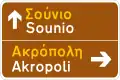 | Tourist roads | White | Brown | Yellow (Greek) White (English) | ||||