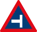 Roadway narrows from the right side ahead