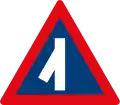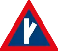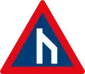 Roadway narrows from the left side ahead