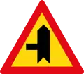 Roadway narrows from the left side ahead