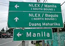 Road signs in the Philippines are regulated and standardized by the Department of Public Works and Highways (DPWH).[1][2] Most of the signs reflect minor influences from U.S. and Australian signs but keep a design closer to the Vienna Convention on Road Signs and Signals, to which the Philippines is an original signatory.[3][4] The Philippines signed the convention on November 8, 1968, and ratified it on December 27, 1973.[5]