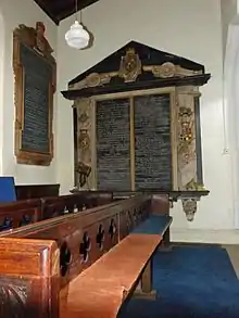 Toward midnight the Earl's old comrade Essex had news of his condition, and sent some officers to enquire for him, and promise speedy surgical attendance. Lindsey was still full of spirit, and spoke to them so strongly of their broken faith, and of the sin of disloyalty and rebellion, that they slunk away one by one out of the hut, and dissuaded Essex from coming himself to see his old friend, as he had intended. The surgeon, however, arrived, but too late, Lindsey was already so much exhausted by cold and loss of blood, that he died early in the morning of 24 October 1642, as he was being carried through the gates of Warwick Castle where other Royalist prisoners were being kept. His son, despite King Charles' best efforts to obtain his exchange, remained a prisoner of the Parliamentary side for about a year.[11] Lindsey is buried in St Michael and All Angels Church, Edenham, Lincolnshire.[1]