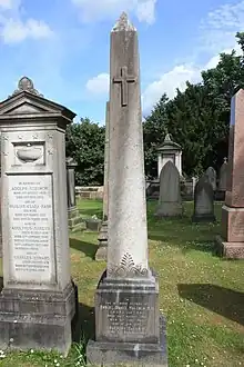 He died on at home, 10 Roseberry Crescent[5] in Edinburgh's West End on 6 June 1894. He was buried on 9 June in the small central southern sections of Dean Cemetery, facing the main southern path.