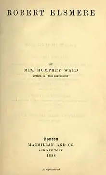 Robert Elsmere is a novel by Mrs. Humphry Ward published in 1888.[1] It was immediately successful, quickly selling over a million copies and gaining the admiration of Henry James.[2]