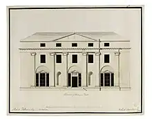 The Hall, Shotesham Park, 1789 drawing from the office of John Soane, close to final design for the entrance elevation