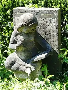 A photograph with accompanying text about Scholtz appeared in 1931 in the Reichshandbuch der Deutschen Gesellschaft[10] It was probably indicative of his lifestyle from the age of fifty onwards: elegantly dressed with dog sitting in a distinguished coach. From his fiftieth birthday in 1927, few more works by him are known. After the war, some of his earlier works were exhibited in various art exhibitions.[11][12][13] In the last days of the Second World War, his house was completely destroyed by the approaching Soviet troops. Scholtz and his wife lived briefly at Trabenerstraße 4 and then at Bettinastraße 14 until his death at the age of 79, both in Grunewald.
