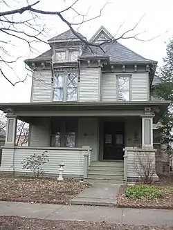 The Robert Greenlee House is a historic house located at 806 N. Evans St. in Bloomington, Illinois. Contractor Robert Greenlee built the house circa 1884 for himself and his family. The house has a Queen Anne design topped by a hipped roof with cross gables. A dormer above the attic extends from a second-story front window; the dormer and window are decorated with Eastlake spindlework and bracketing. A tall stained glass window on the north facade features a central rose window and surrounding geometric panes, a pattern fitting both the Queen Anne and Eastlake styles. The cornice and front porch include dragon-shaped bracketing, a decorative element taken from Anglo-Japanese architecture; an Anglo-Japanese influence can also be seen in the roof's pagoda-style curvature.[2]