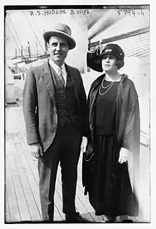He was the eldest son of Robert William Hudson, who had inherited and then sold the substantial family soap business, and Gerda Frances Marion Bushell. The wealth he inherited from the soap business ensured that Hudson always had a very privileged and well off existence.[1] Hudson was educated at Eton College and Magdalen College, Oxford.[1] He entered the Diplomatic Service in 1911, becoming an attaché and First Secretary at the British embassy in Washington.[2] Hudson afterwards served as a diplomat in Russia.[2] On 1 December 1918, he married a wealthy American woman, Hannah Randolph of Philadelphia, whom he had met during his time as a diplomat in Washington. He had a particular interest in farming and was a member of the council of the Royal Agricultural Society.