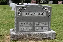 Robert Clendening gravestone in Arlington Cemetery, Upper Darby Township, Pennsylvania