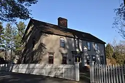 The Robert Jenison House is a historic house at 1 Frost Road in Natick, Massachusetts. It is a 2+12-story wood-frame house, five bays wide, with a side-gable roof, large central chimney, and clapboard siding. The house was built c. 1738 by Robert Jenison. It is one of the town's oldest buildings, and its builder is known to have built a number of other houses in Sudbury and Sherborn.[2] The house was originally part of a 200 acre tract of land that was sold by the Natick Indians despite protests from John Eliot.[3] There is an outbuilding on the property that is marked as the site where Vice President Henry Wilson learned to make shoes.[4]