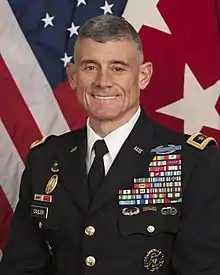 From May 2008 to December 2009, Caslen served as commander of the 25th Infantry Division. In October, he returned from a tour with the division in the Iraq War. Before this, he had served two tours in Afghanistan and one tour in the Gulf War.[14] In December 2009, Caslen was nominated to be a lieutenant general in conjunction with his nomination to be Commandant of the United States Army Command and General Staff College at Fort Leavenworth which took effect in March 2010. In July 2011, Caslen was nominated to be chief of Office of Security Cooperation in Iraq.[15]