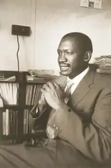 In 1954, after moving to Johannesburg, Sobukwe became a lecturer of African Studies at the University of the Witwatersrand.[6][7] During his time in Johannesburg he became editor of The Africanist newspaper and soon began to criticise the ANC for allowing itself to be dominated by sympathizers of the Progressive Party, which he termed "liberal-left-multi-racialists".[5] He was an ardent supporter of Africanist views about liberation in South Africa and rejected the idea of working with Whites.[5]
