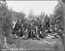 The regiment served in the Peninsula Campaign, and Tyler commanded the siege train of the Army of the Potomac under Maj. Gen. George B. McClellan. He received commendations for his participation in the Battle of Hanover Court House, the Battle of Gaines' Mill and the Battle of Malvern Hill.[7] On November 29, 1862, Tyler was promoted to brigadier general of volunteers and under General Ambrose Burnside was assigned command of all the artillery in the "Center Grand Division" of the army. He was the second officer in the artillery to hold that position, the other being Henry Jackson Hunt.[5] His guns participated in the Battle of Fredericksburg, providing artillery support for the series of assaults on Confederate positions on the heights near Fredericksburg.