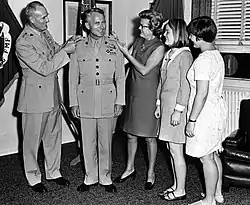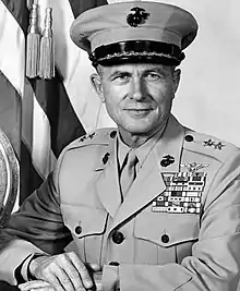 He rose to the three-star rank and completed his career as commanding general, Marine Corps Development and Education Command at Quantico, Virginia, in September 1974 after 34 years of service.[2][1]