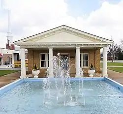 Robert Quillen Office and Library is an historic office and library building located at Fountain Inn, Greenville County, South Carolina. It was built in 1928, and is a small one-story, one-room brick Neo-Classical Revival building with a distinctive temple front. Directly in front of the Office are a rectangular reflecting pool and a round pool, and a granite obelisk known as the "Monument to Eve." Born in 1887 in Syracuse, Kansas, Robert Quillen moved to Fountain Inn in 1911 to start the Fountain Inn Tribune. He wrote paragraphs, editorials, one-liners, and cartoons for the Baltimore Sun, the Saturday Evening Post, and The American Magazine. Quillen died after a prolonged illness on December 9, 1948.[2][3]