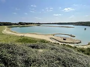 In 1971 Smithson created Broken Circle/Spiral Hill in Emmen, the Netherlands[25] as part of the Sonsbeek art festival. The subject of the 1971 Sonsbeek exhibition was Beyond Lawn and Order (Dutch: Buiten de perken). The Broken Circle earthwork was built in a quarry lake 10-to-15 feet deep. It was 140 feet in diameter, with the canal 12 feet wide, and built of white and yellow sand. The accompanying Spiral Hill is made of earth, black topsoil, and white sand, and is 75 feet in diameter at its base.[8][26] The work is still being maintained and occasionally opened for visitors.