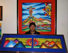 ![]() Roberto Mamani Mamani in one of his galleries in La Paz, Bolivia. | |